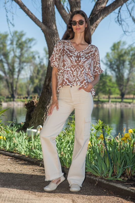 Su delicado vuelo en las mangas le da un aire romántico y elegante, ideal para usar con jeans, faldas o pantalones de lino.